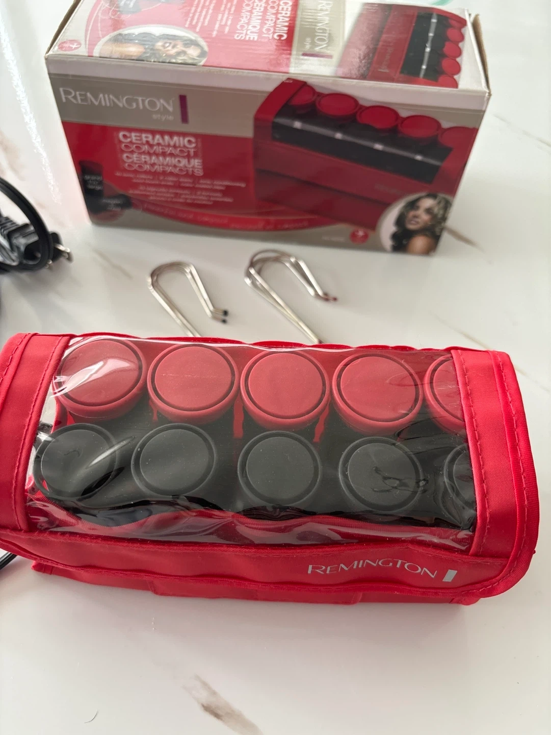 This set includes Remington Ceramic Compact hair rollers. They are a red and black colour. It's a handy tool for styling your hair. missing 1 of the red pins and 2 black ones. You can just use clips instead