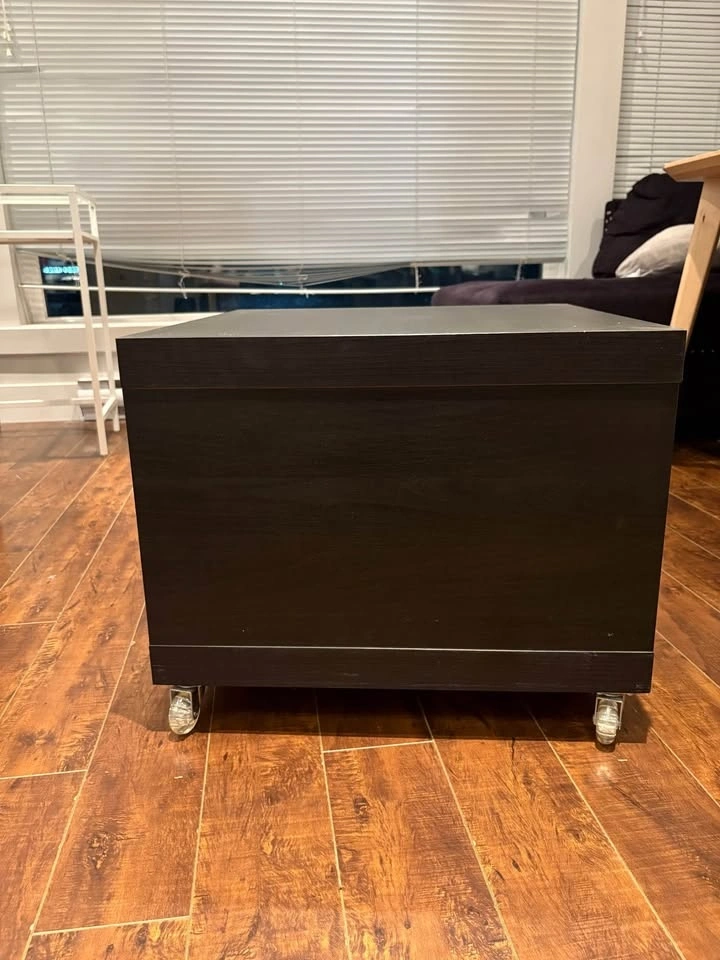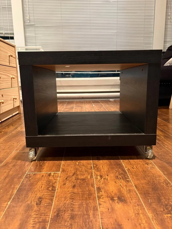 Discontinued model of LACK side table from Ikea. Installed with 4 wheels. 55cm (W) x 55cm (D) x 45cm (H). Great as side table/nightstand. Pick up only.