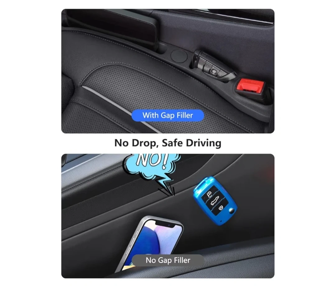 Block the gap, Drive safely seat gap filler provides 100% gap coverage between car seat and center console, which prevents your keys, phones, earbuds, change, credit card, make-up, snacks and more other small things from falling down the gap.
