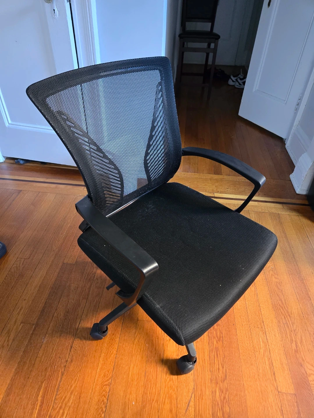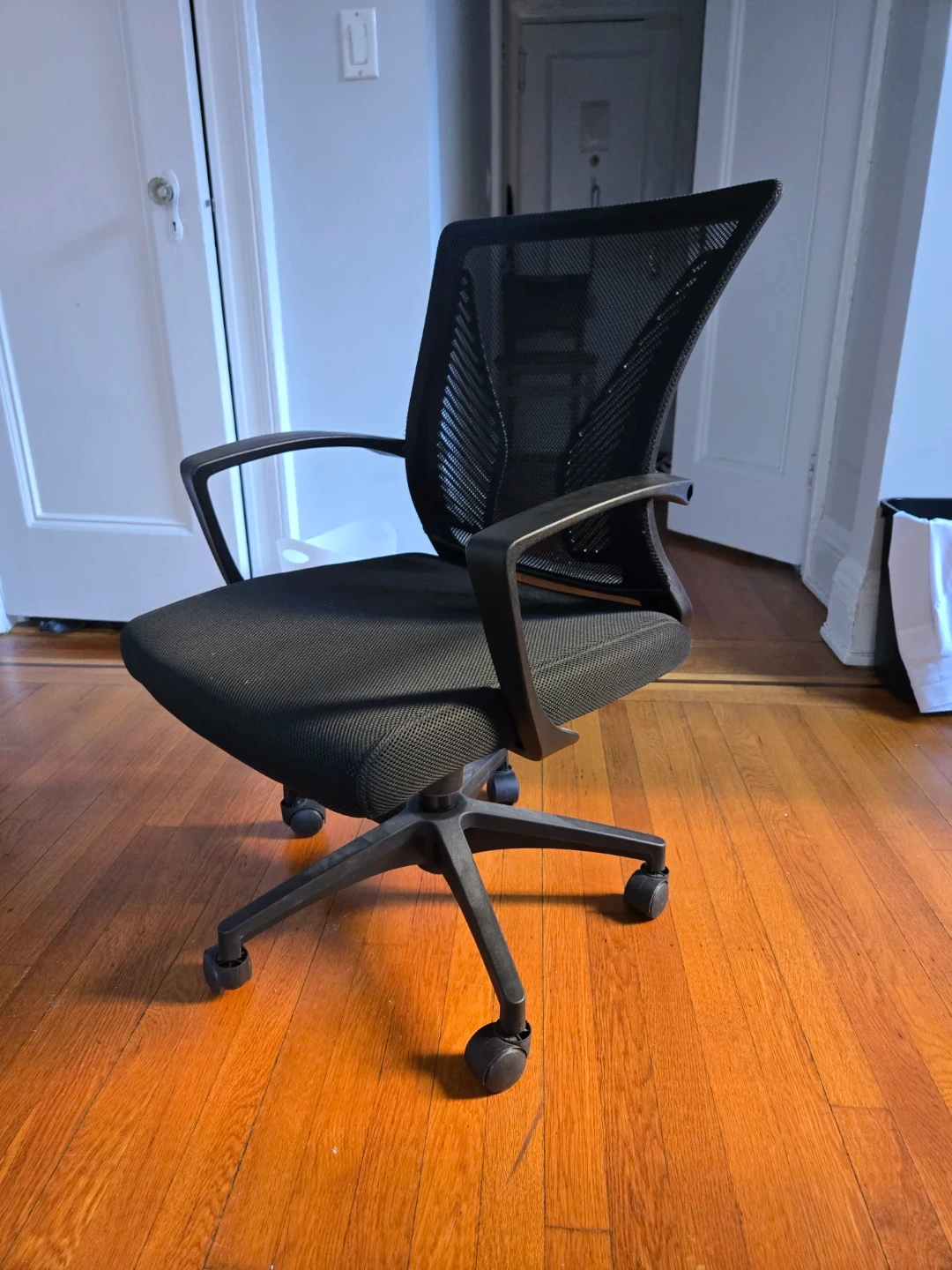 Office chair with mesh back, soft cushion seat. Has lever for adjustable control. Bought it brand new and only used for 2 years. Midtown East.
