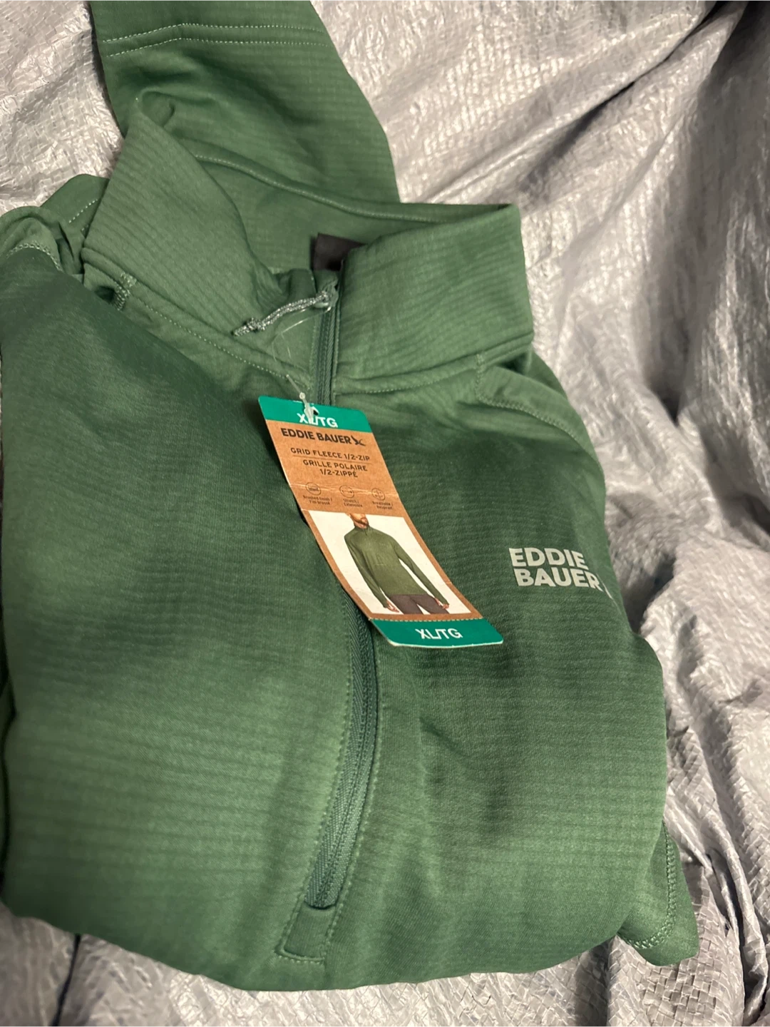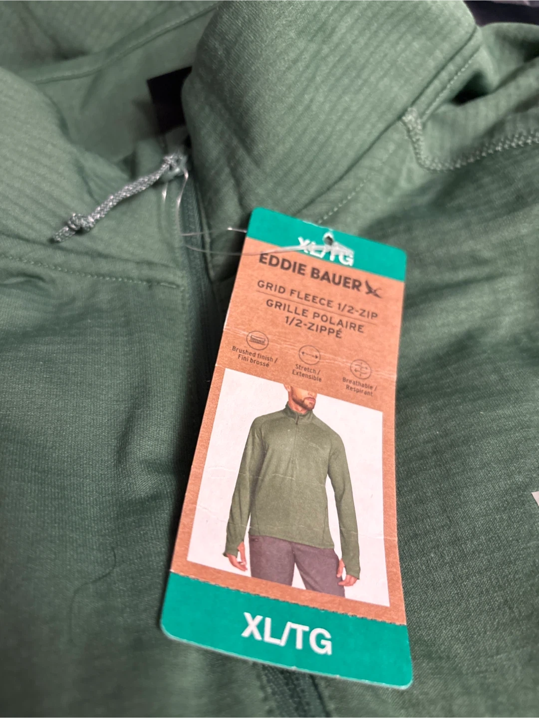 Eddie Bauer men's Grid Fleece 1/2-Zip pullover. Brushed finish, stretch, and breathable fabric. Size XL/TG.
