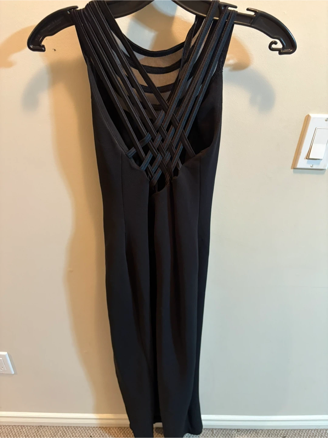 Selling a beautiful black dress from Mark Edwards in size 6. It features a unique strap design on the back and a sleek, elegant look. Perfect for a night out or a special occasion!