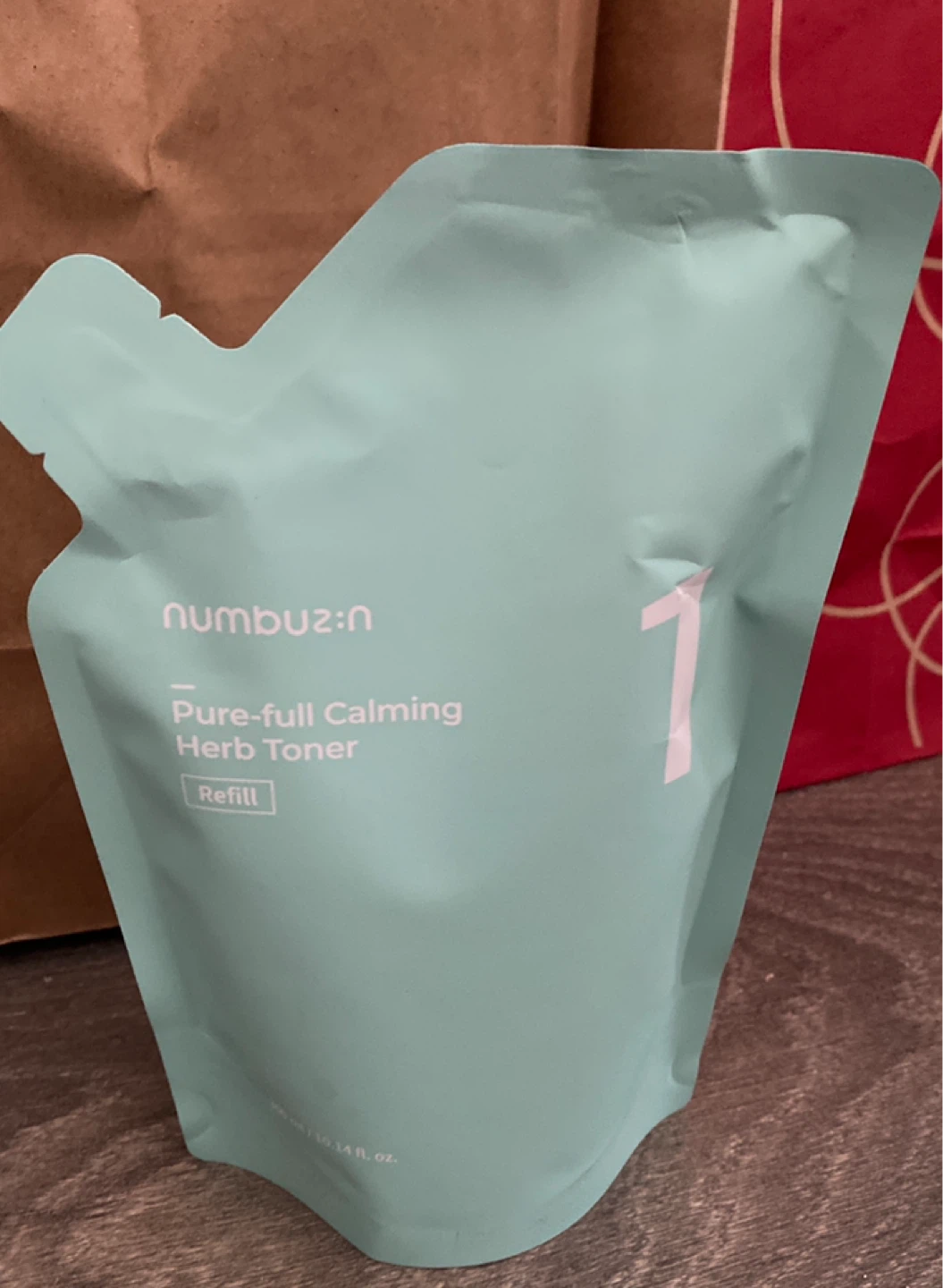 This is a refill pouch for the numbuz:n Pure-full Calming Herb Toner. It's a skincare product made for calming and hydrating the skin. The refill is convenient for continuing your skincare routine.