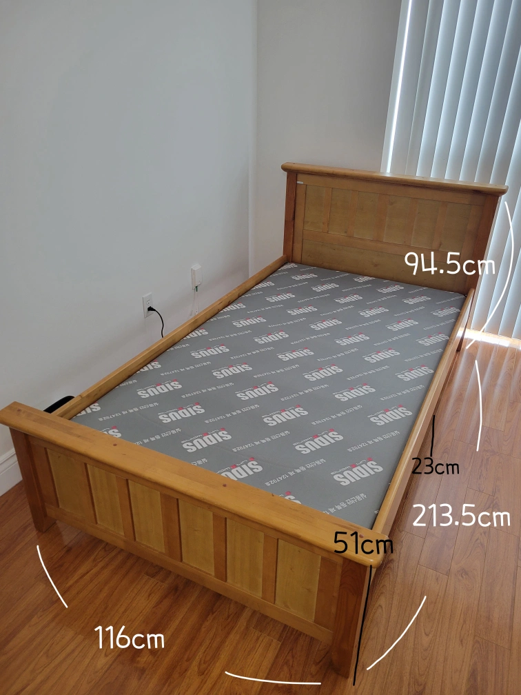 Twin bed frame from Korea. Used it for a while but is still in good condition. Made with solid wood.