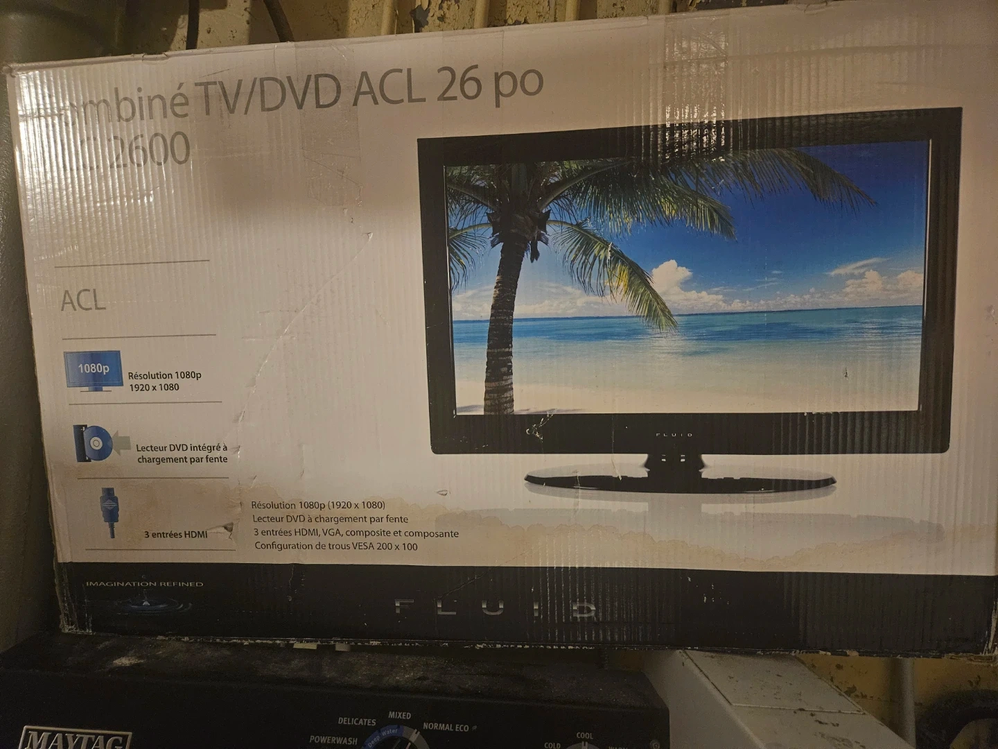 This is a Fluid ACL 26 inch TV and DVD combo unit. It supports 1080p resolution and has a slot-loading DVD player built-in. It comes with 3 HDMI inputs and VGA and composite connections too.