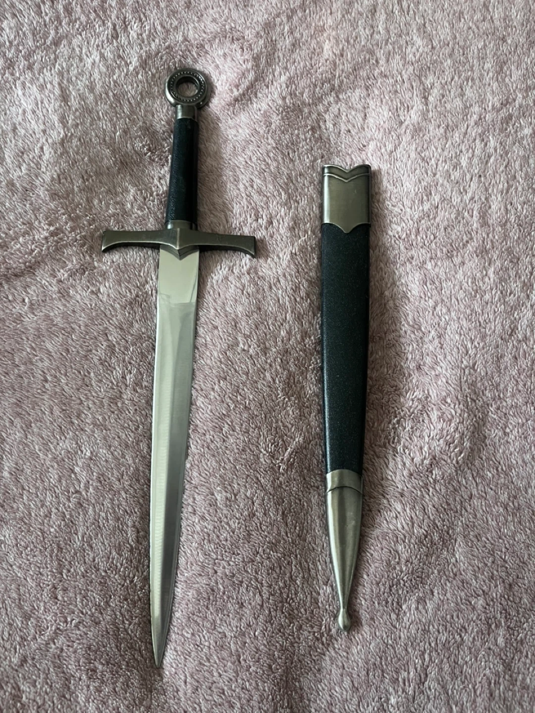 This decorative sword is 16” x 3.75” made from 440 stainless steel. It comes with a scabbard for storage and display. It's great for collections or as a prop!