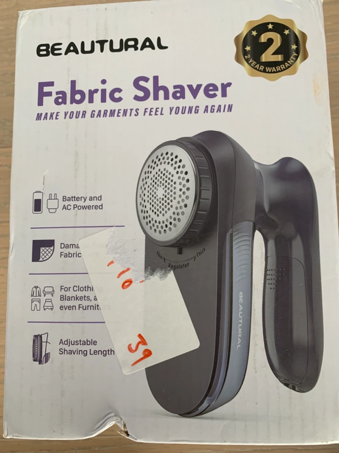 This BEUTURAL fabric shaver makes garments feel new again. It's battery and AC powered with adjustable shaving length. Use it for clothes, blankets, and even furniture! It's a handy tool for keeping your fabrics looking fresh.