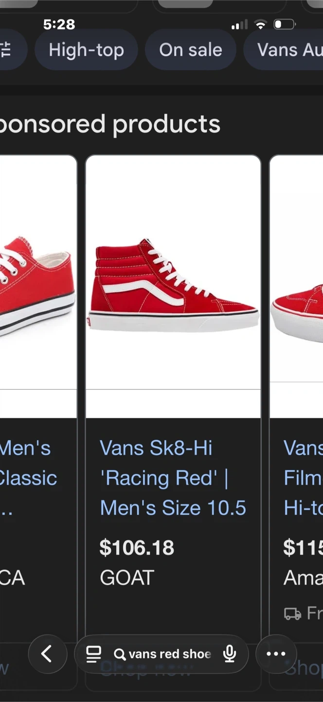 Selling a pair of Vans in the Racing Red colourway! The size is a woman’s 6.5/7.
