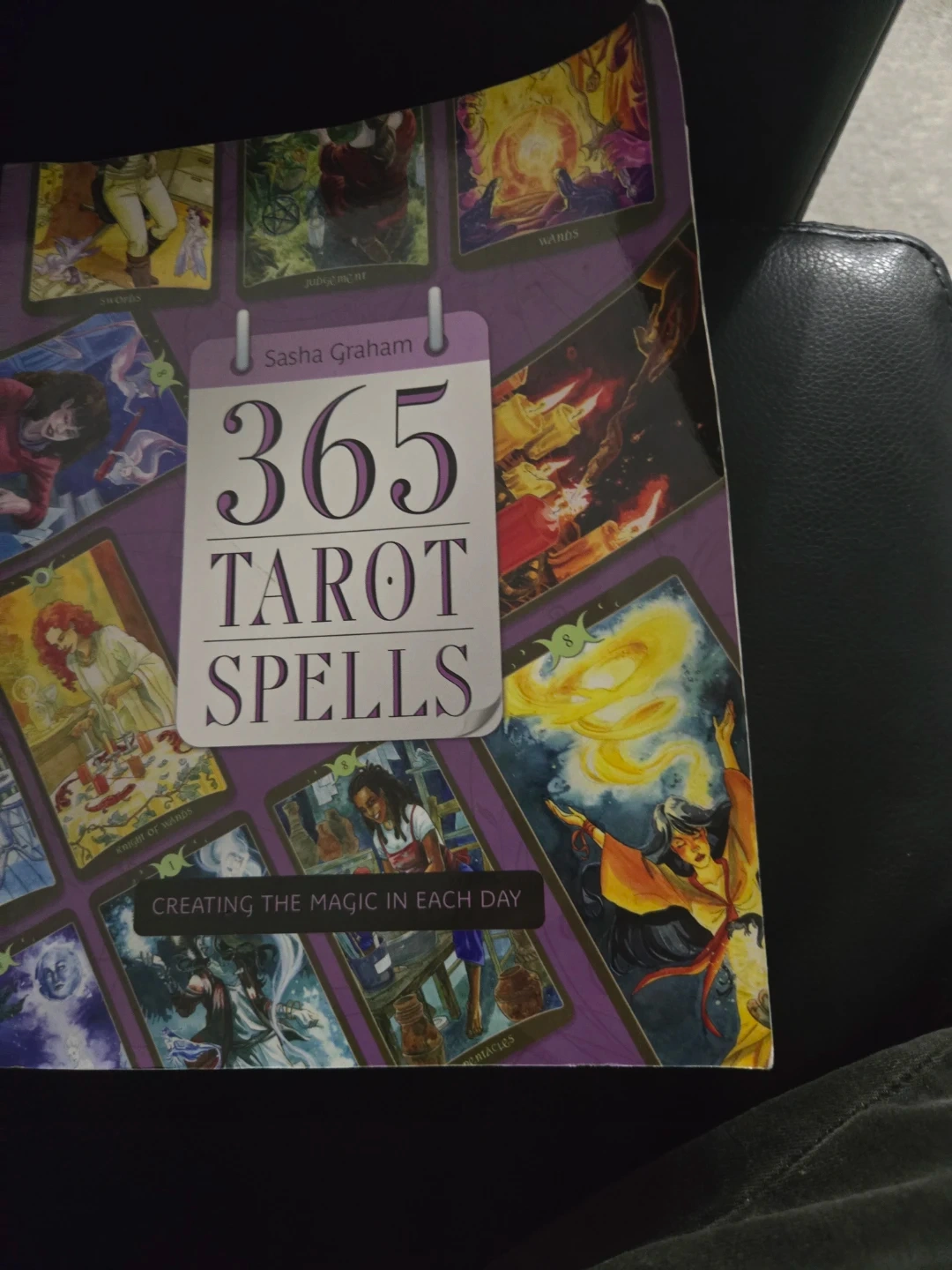 This book is titled 365 Tarot Spells and is written by Sasha Graham. It focuses on creating magic in each day. It includes various tarot card illustrations.