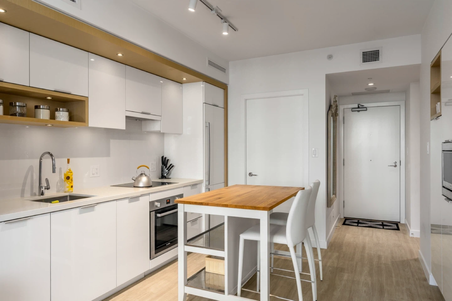 Steps to the Seawall, SkyTrain, restaurants, breweries, and everything Olympic Village has to offer.