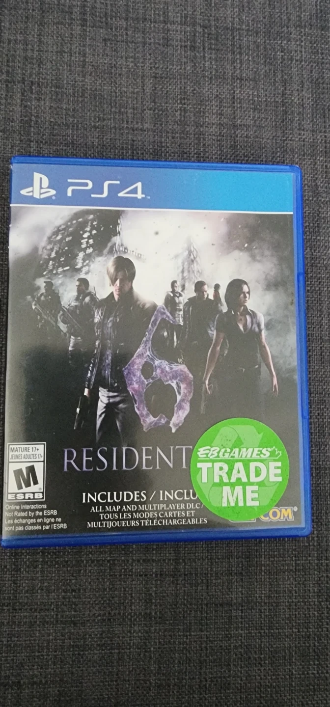 Resident Evil 6 for PS4. Includes all map and multiplayer DLC. This game is rated M for Mature 17+.