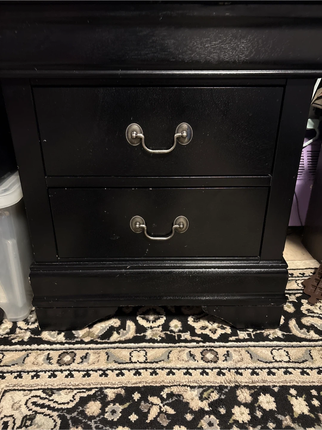 Selling a black dresser and matching set of 2 nightstands. This set is perfect for extra bedroom storage and has a clean, modern look that fits well with most bedroom styles.