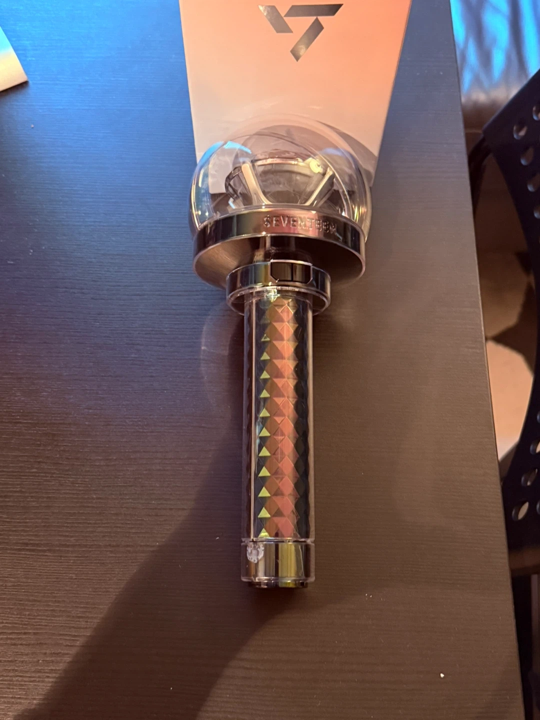 This is a SEVENTEEN lightstick. It's silver and clear with a diamond-shaped top. Used twice and in good condition. There is a spot near the handle where I had to glue it together because it was coming off.