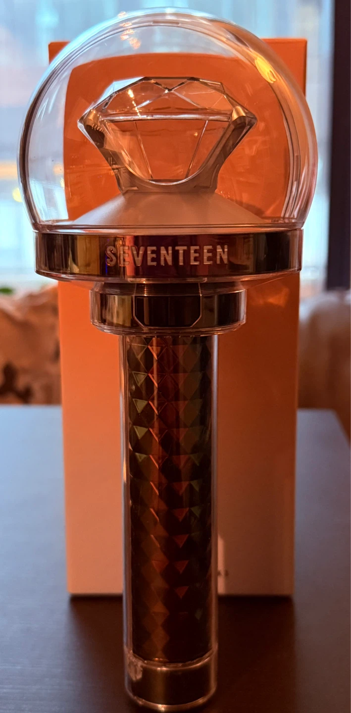 This is a SEVENTEEN lightstick. It's silver and clear with a diamond-shaped top. Used twice and in good condition. There is a spot near the handle where I had to glue it together because it was coming off.