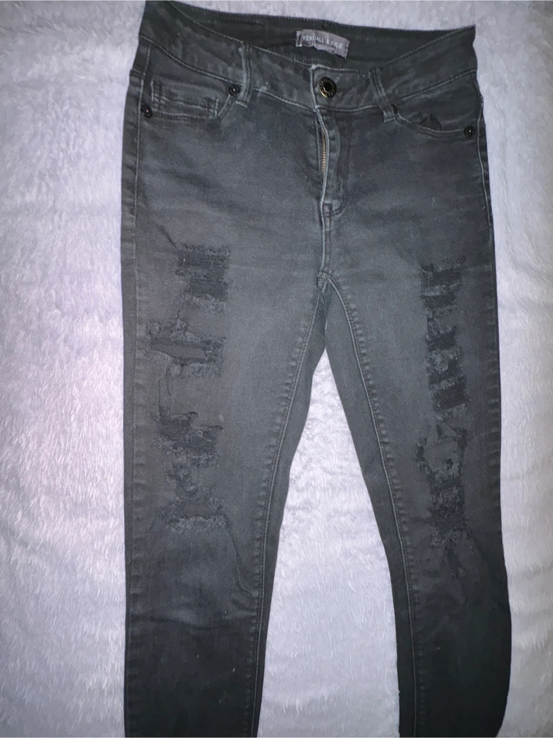 black skinny jeans from Kendall & Kylie. They feature distressed detailing on the legs. Made from a comfortable denim material. Size 0