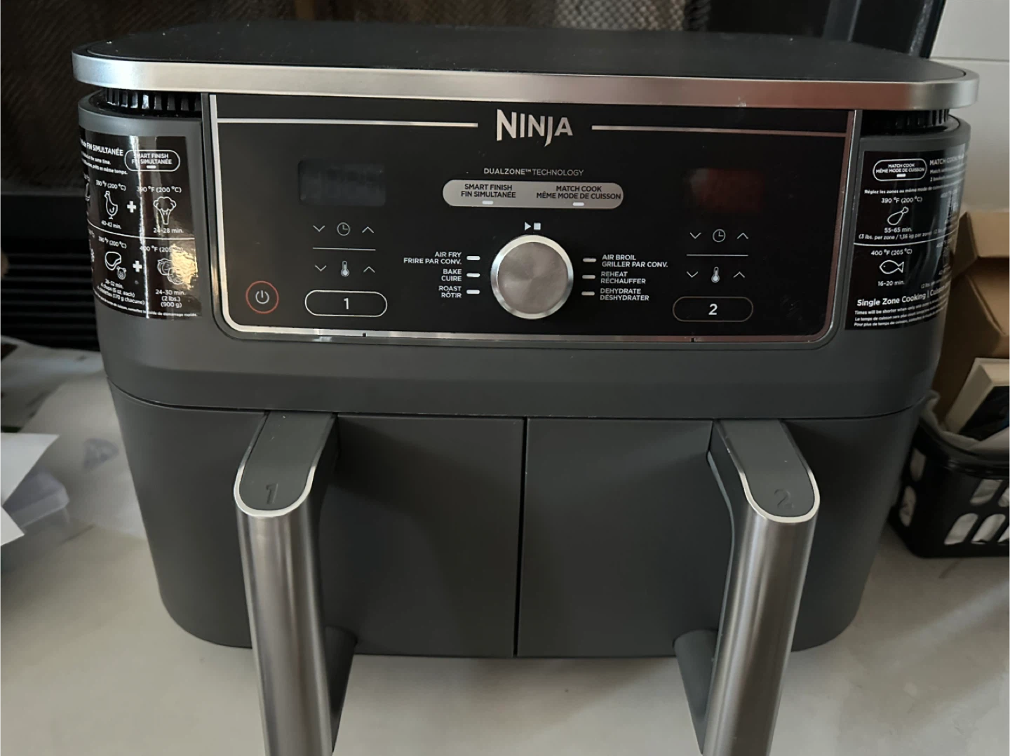 Selling a Ninja Foodi XL 2-Basket Air Fryer. It's in great shape and ready for a new home! This model features DualZone technology and offers multiple cooking functions like air frying, baking, roasting, and dehydrating. The original price was $249.99