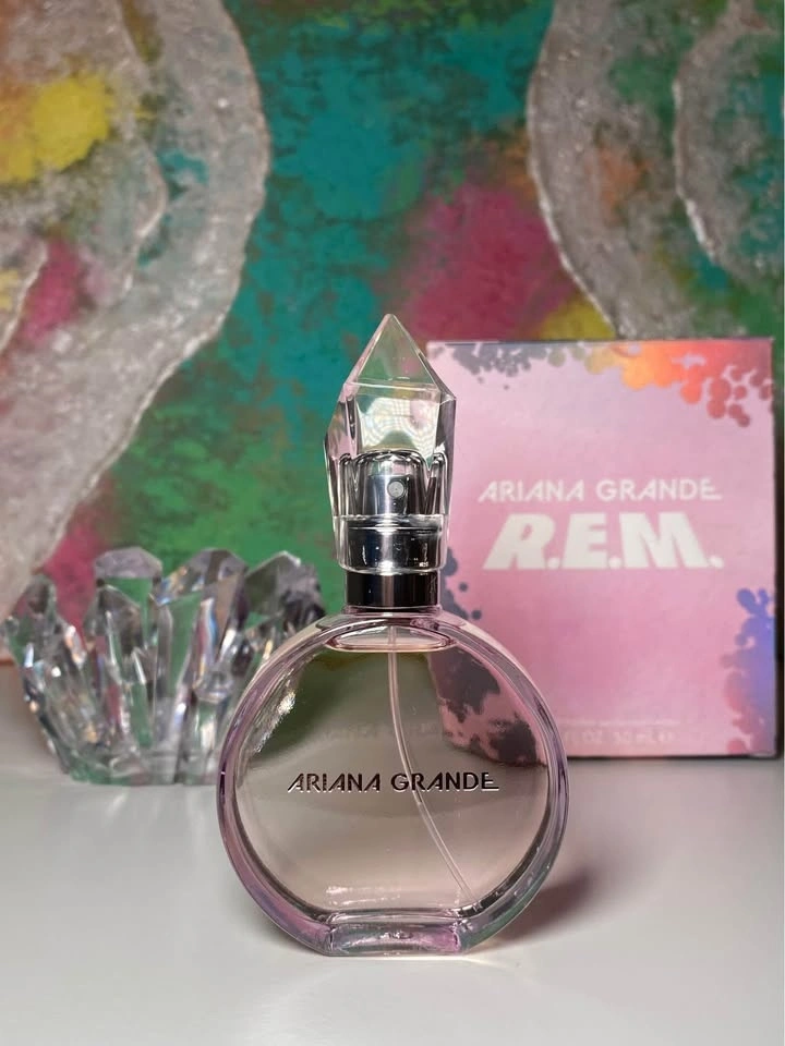 R.E.M. Eau de Parfum by Ariana Grande 50 mL with Box. Retails: $78/$88 with tax for 50mL. Almost Brand New, only sprayed once. Comes with Box. The dreamy fragrance by ARIANA GRANDE. A blend of Juicy Fig and Warm Salted Caramel. Lavender essence, sparkling Pear Blossom, Intoxicating Musk wrapped with Sandalwood.