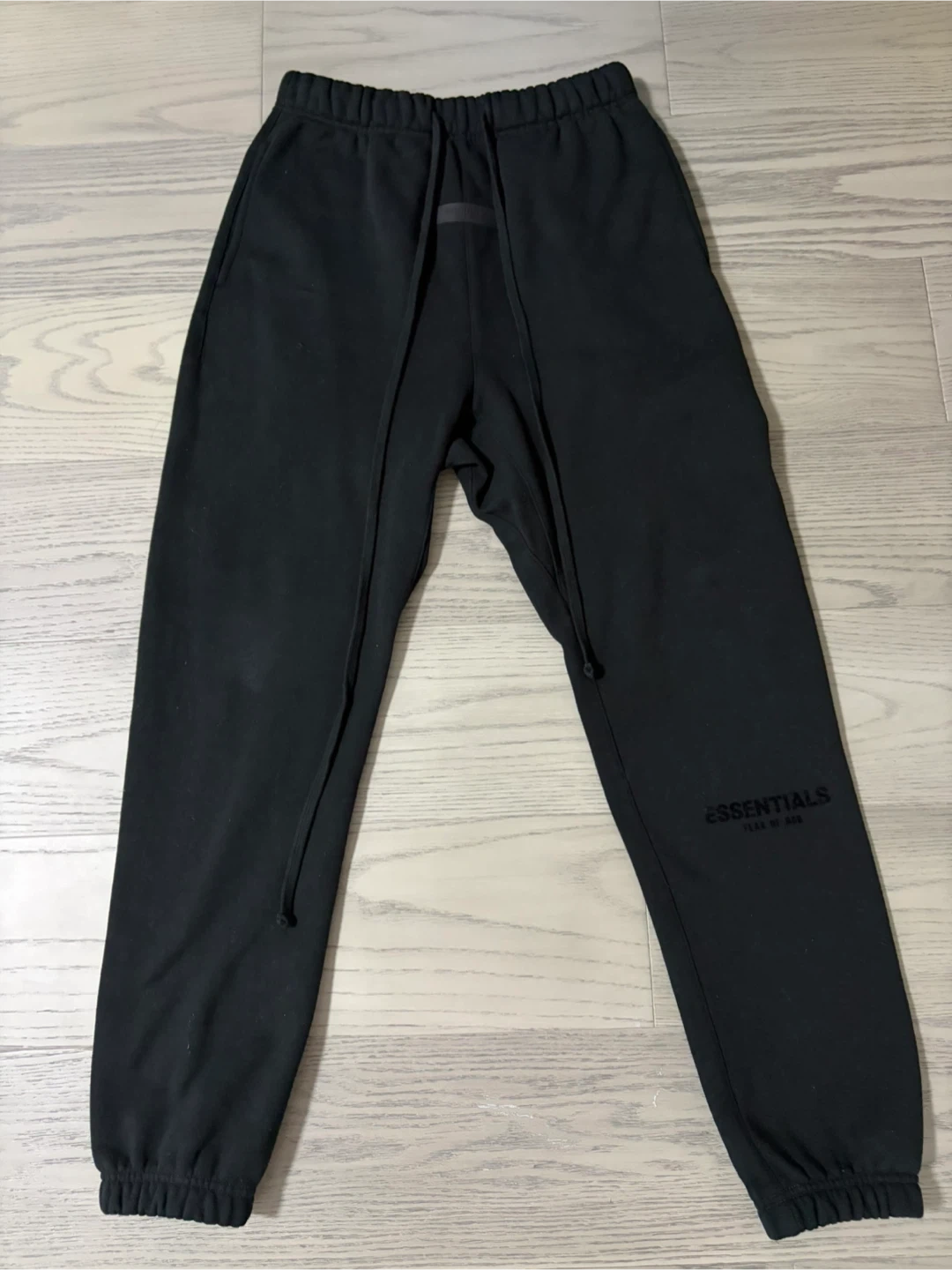Black sweatpants from ESSENTIALS Fear of God. Elastic waistband with drawstring. Ribbed cuffs.