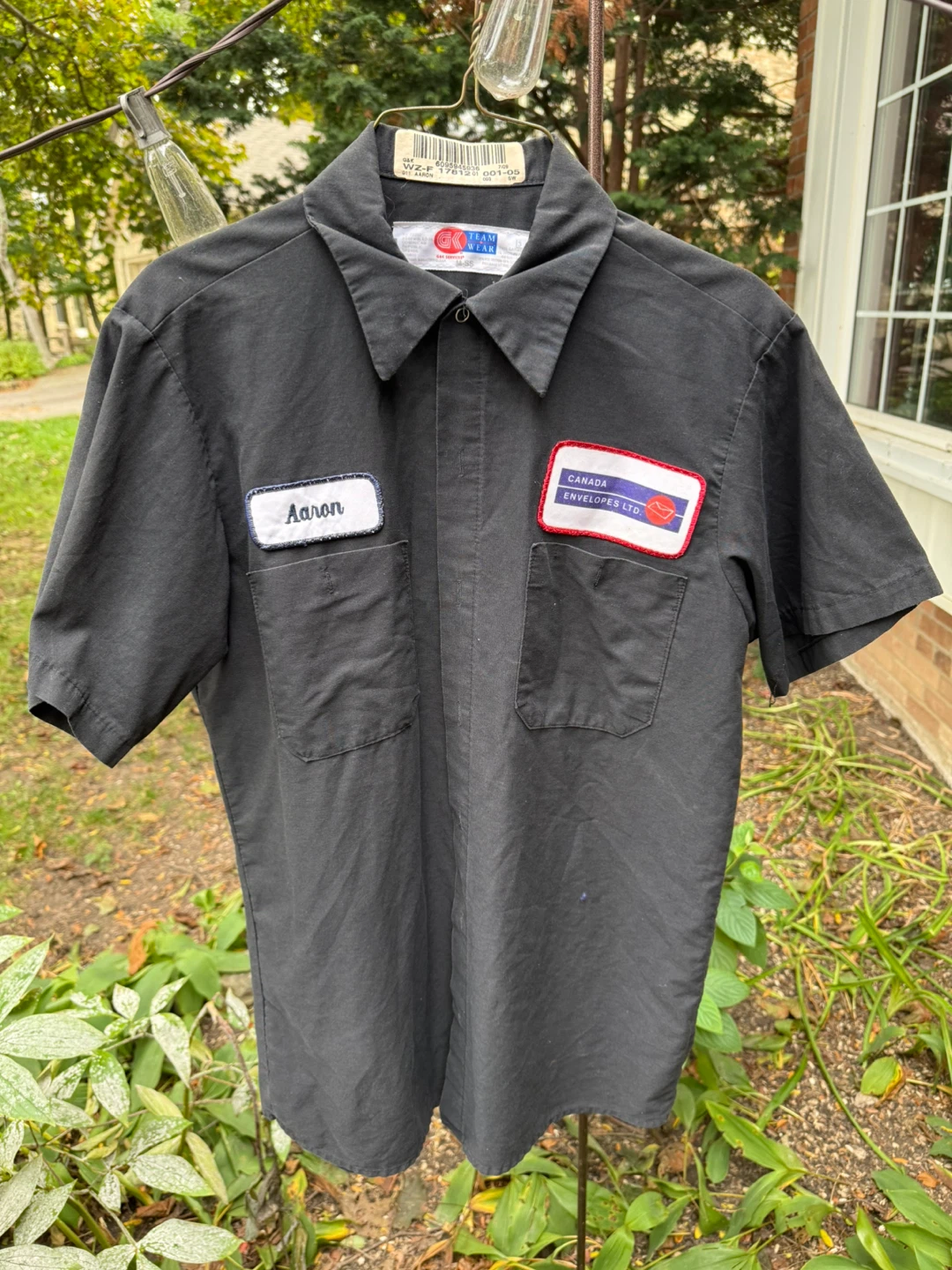 I'm selling a black work shirt in size small. It features patches for "Aaron" and "Canada Envelopes LTD". It's in good condition and ready for a new home! pickup Dufferin and Steeles area or shipping available for a fee