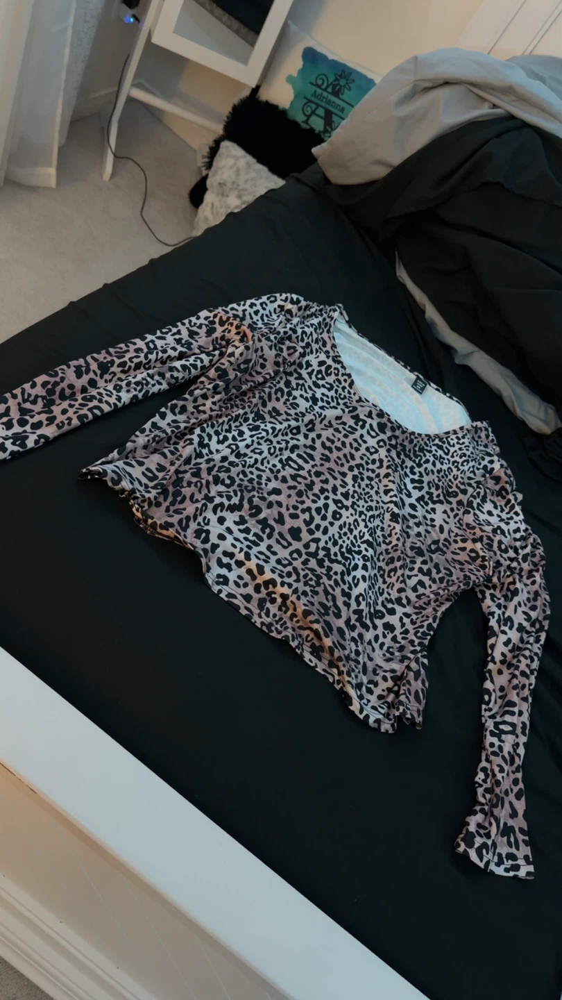 This Shein top has a leopard print design and long sleeves. It's made from a lightweight material. This top's versatile print makes it easy to pair with different outfits.