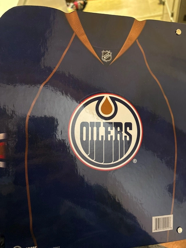 Show off your team pride with this Edmonton Oilers 3-ring binder, perfect for keeping your documents organized. This binder is in used condition, ready to bring some hockey spirit to your school or office. It has some visible wear and tear but is still perfectly usable. Looking for a unique way to support your Oilers? This binder is just the ticket! If the ad is up, yes, it's still available!
