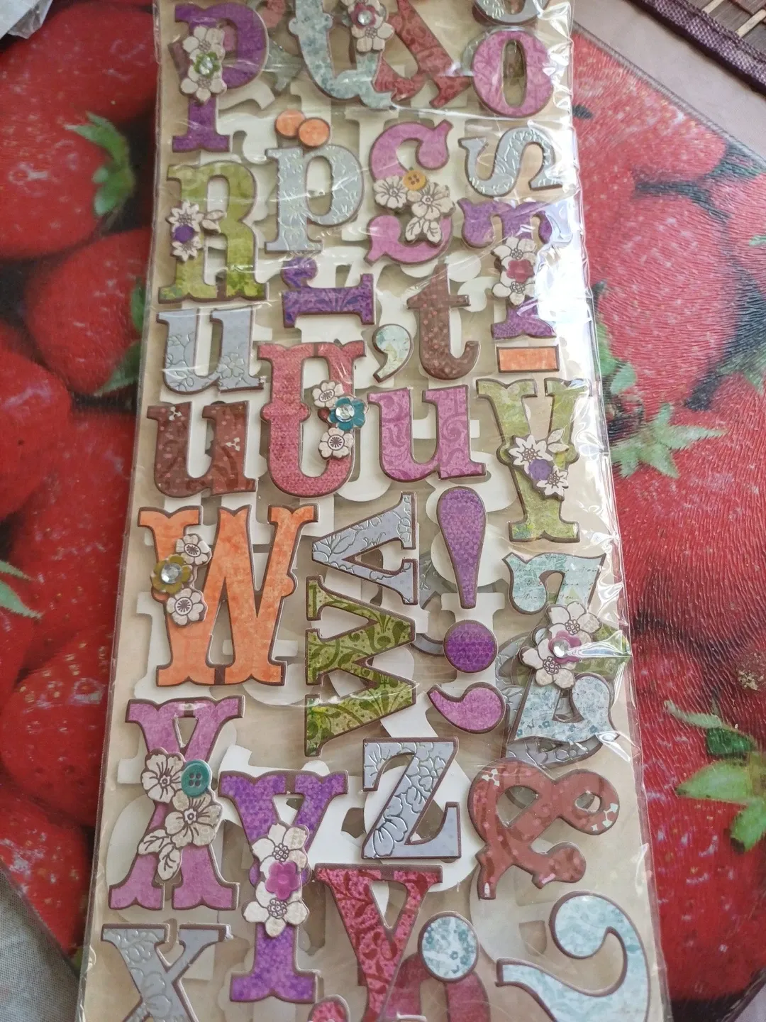 I'm selling a set of K&Company Grand Adhesions alphabet stickers. These stickers feature a variety of colourful and decorative letters, perfect for adding a personal touch to crafts, scrapbooks, and other creative projects. The package contains 81 pieces.