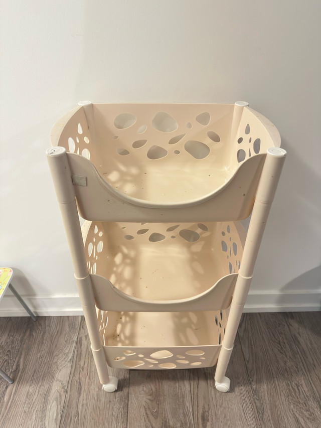 Lightweight and functional rolling organizer — perfect for kitchen, laundry, bathroom, or kids’ room. The ventilated baskets keep items fresh and easy to reach.