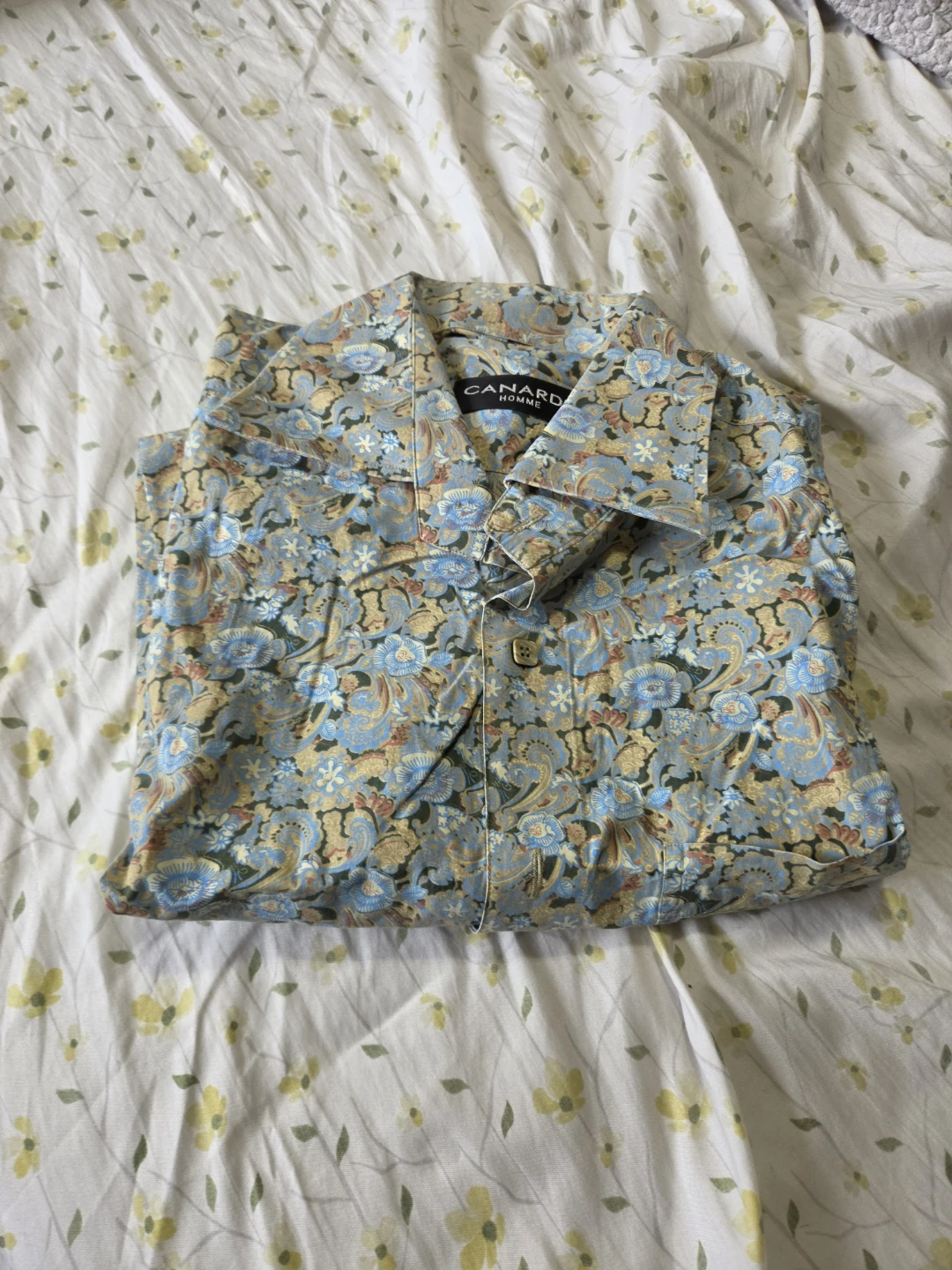 This Canardi Homme shirt features a colourful floral and paisley print. It's a short-sleeved button-up style, perfect for casual wear.