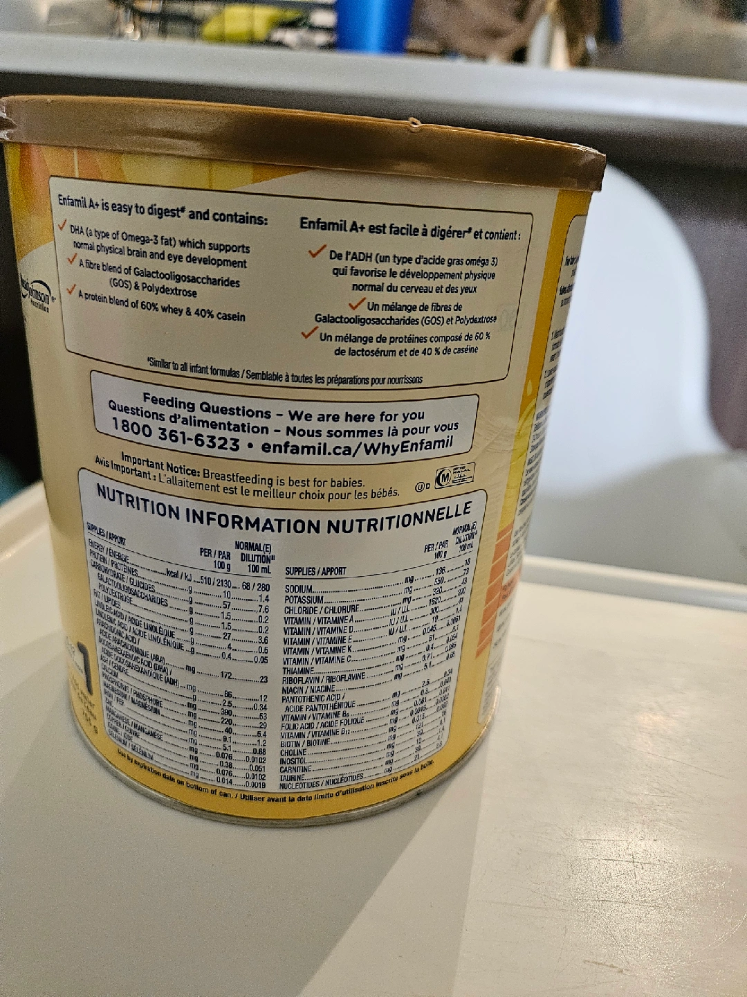 Selling a 765g can of Enfamil A+ baby formula. It contains DHA Plus and is easy to digest. The expiration date is 2026 September 01. My toddler switched to cow's milk and Formula is no longer needed.