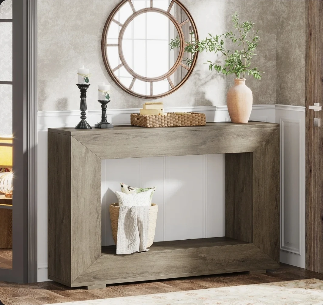 This modern console table comes in a gray oak finish. The open shelf offers ample storage space. Available for pickup or delivery for extra $10 in around Nepean area.
