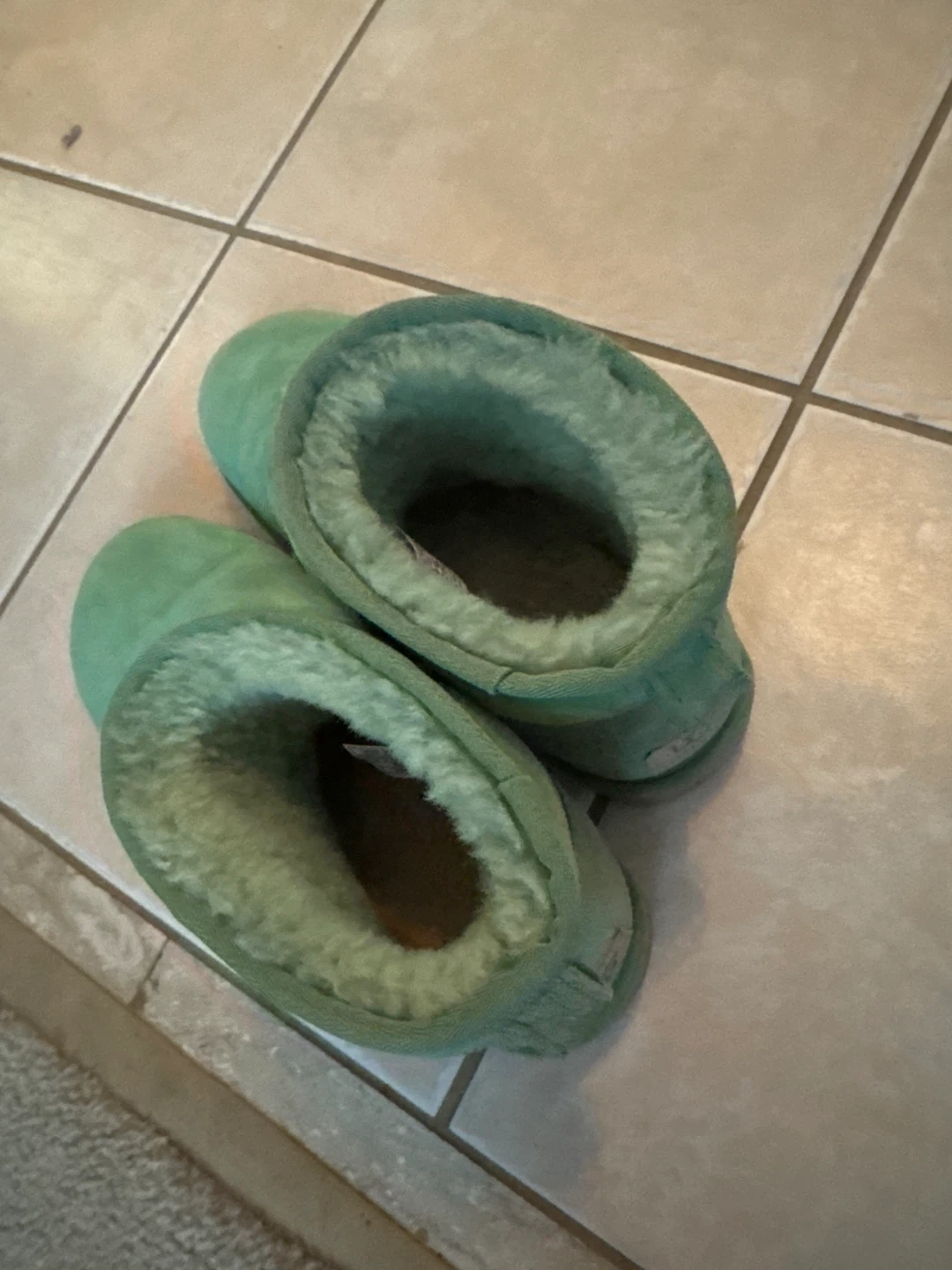 Selling a pair of UGG Classic Mini boots in a lovely green colour. These cozy boots are perfect for keeping your feet warm and stylish during the colder months. They show some signs of wear, but still have plenty of life left in them!