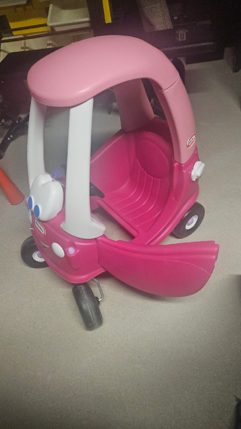 Selling a gently used Little Tikes Cozy Coupe in pink! It's in great condition and ready for a new little driver. Perfect for indoor or outdoor play, this classic toy encourages active play, imagination, and motor skill development