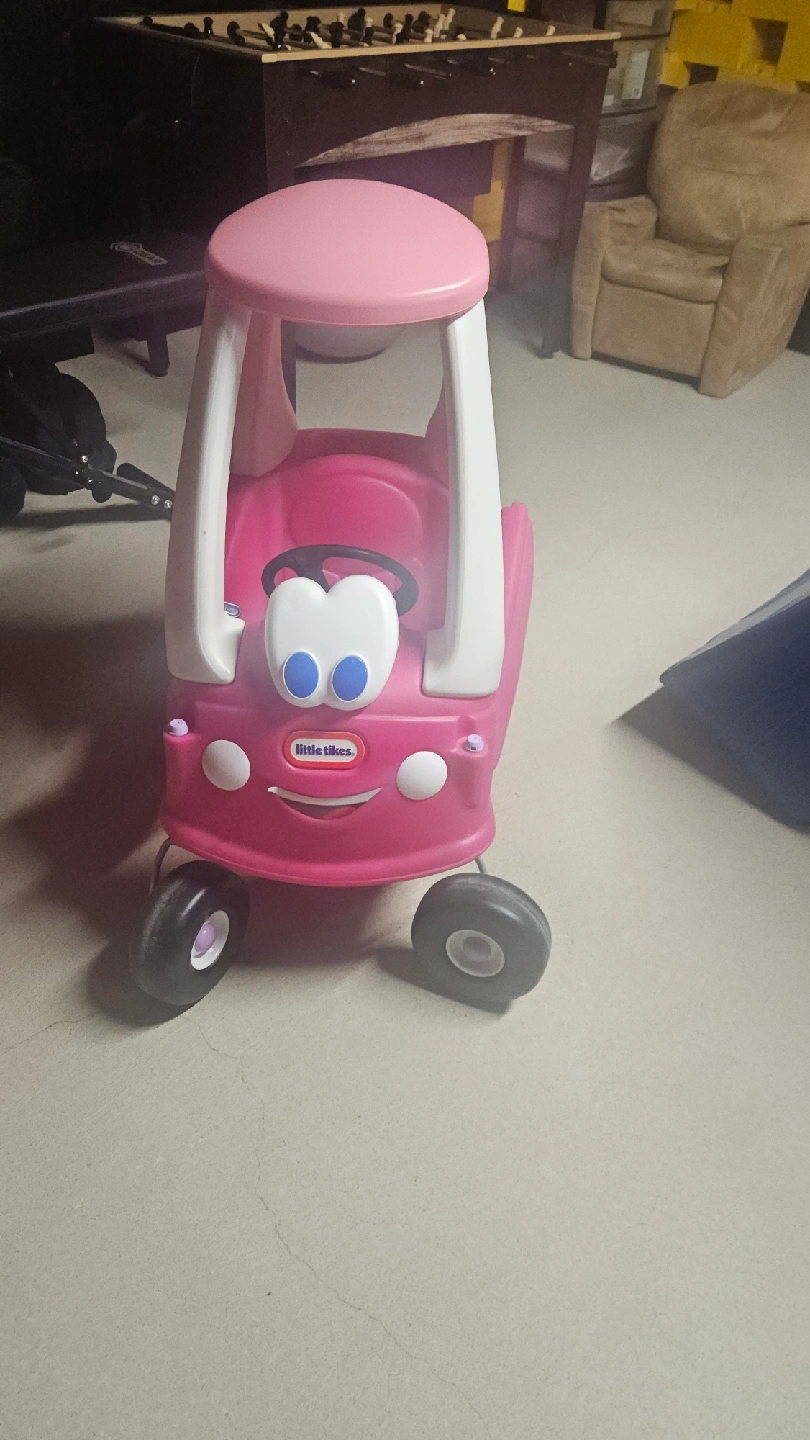 Selling a gently used Little Tikes Cozy Coupe in pink! It's in great condition and ready for a new little driver. Perfect for indoor or outdoor play, this classic toy encourages active play, imagination, and motor skill development