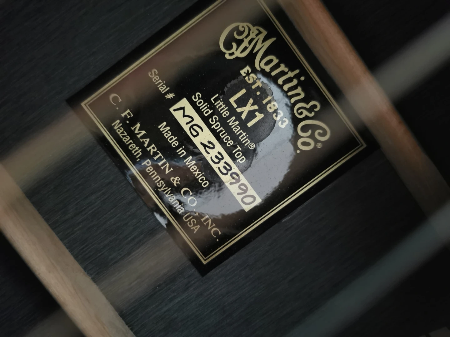 This is a Martin LX1 Little Martin guitar with a solid spruce top. It's made in Mexico and comes with its original gig bag. A great travel acoustic!