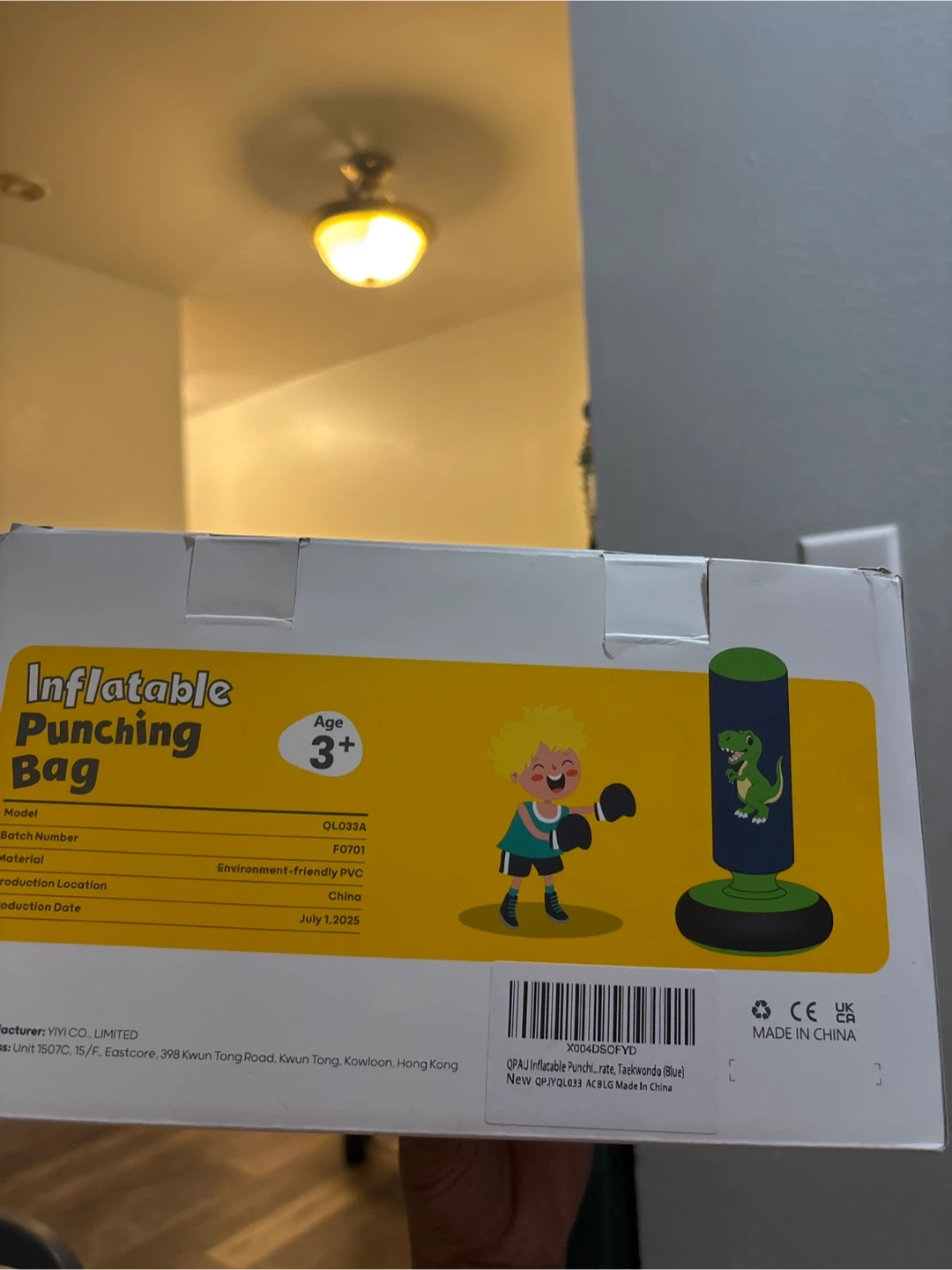 Selling a brand new QPAU inflatable punching bag, still in its original box! It's perfect for kids aged 3 and up. The production date on the box is July 1, 2025, and it's made with environment-friendly material. Get ready for some fun and active play!