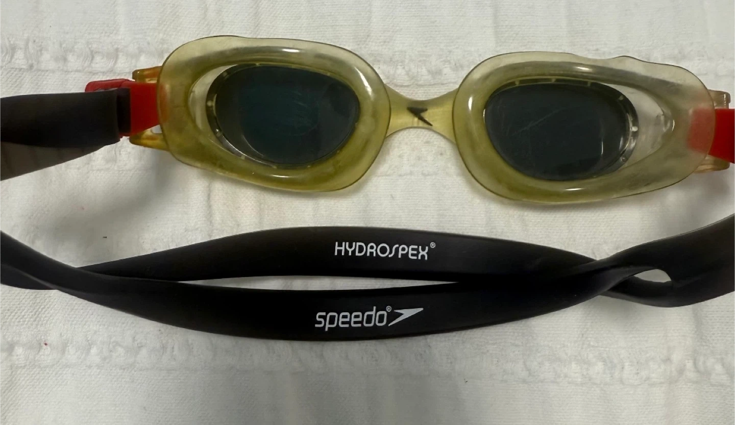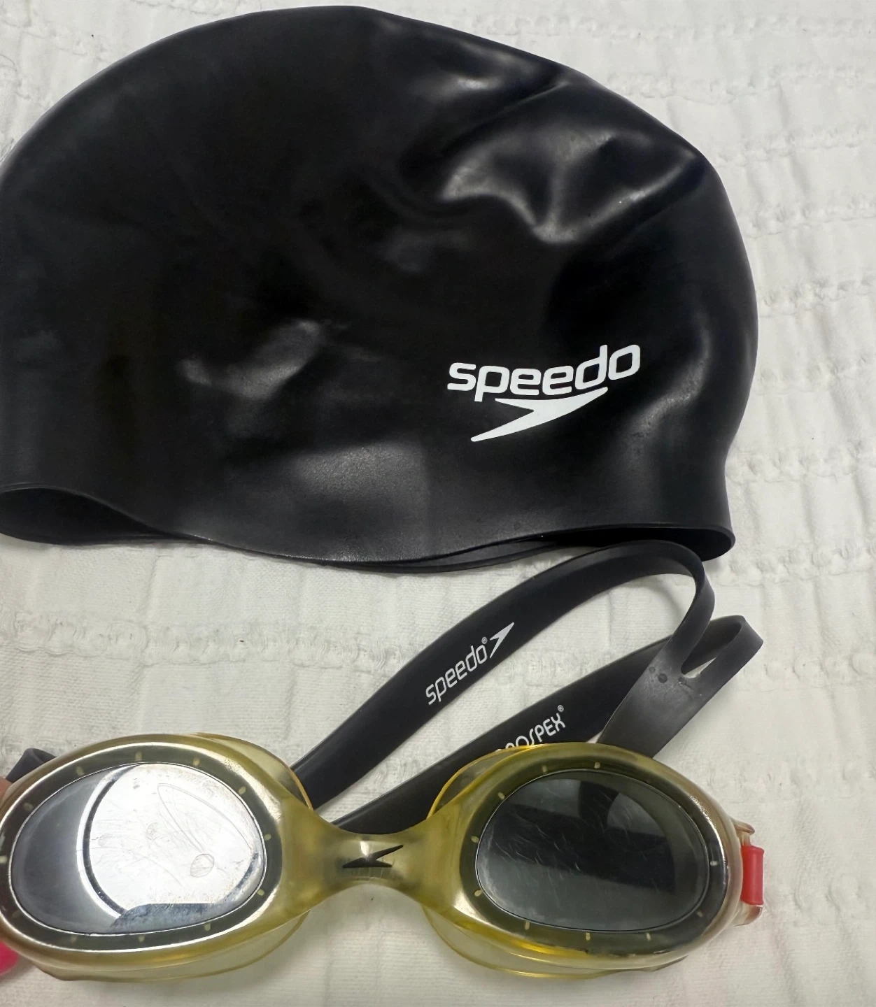 This is a black Speedo swim cap and yellow Hydrospex goggles. The goggles have adjustable straps for a secure fit. They're ready for your next swim session!