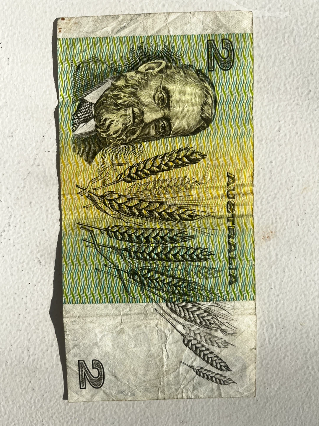 This is an Australian two dollar note. It features a portrait of Queen Elizabeth II on one side and a depiction of a ram on the other. It's a note for collectors. Please check the pictures, what you see is what you get. I’m in Fleetwood near the Community Center. I can ship, cost depends on the location For 2 any items I offer 5% Discount, for 3 items 10% discount and for 10 or more 20% Discount Thank you for check my listings.