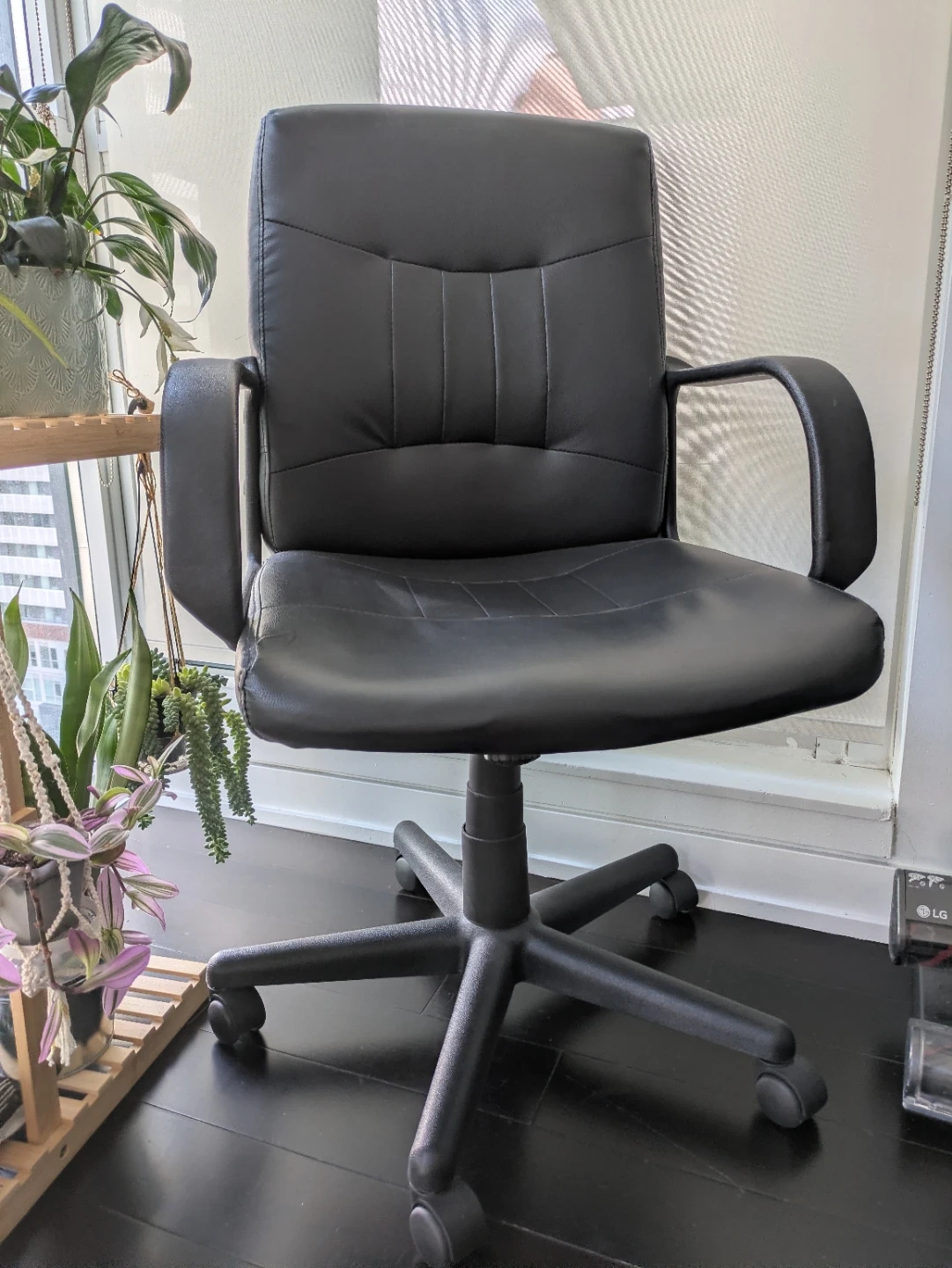 Selling a black office chair in excellent condition. It's perfect for a home office or study space. The chair is comfortable and has adjustable height. Very comfortable for longer term seating and less than six months of use.