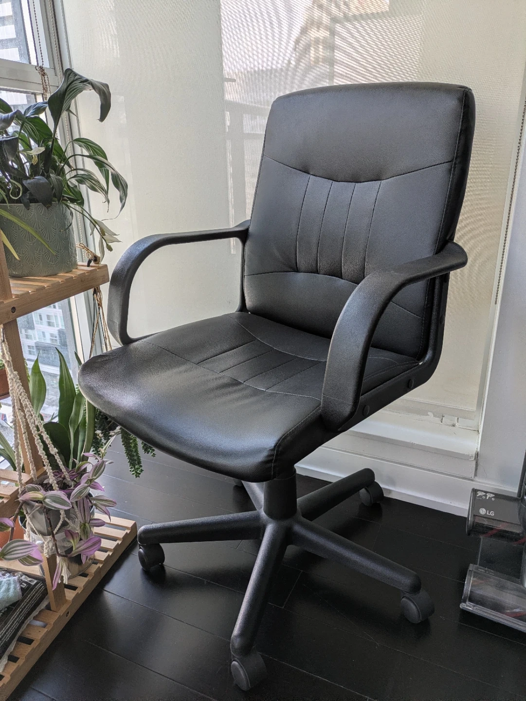 Selling a black office chair in excellent condition. It's perfect for a home office or study space. The chair is comfortable and has adjustable height. Very comfortable for longer term seating and less than six months of use.