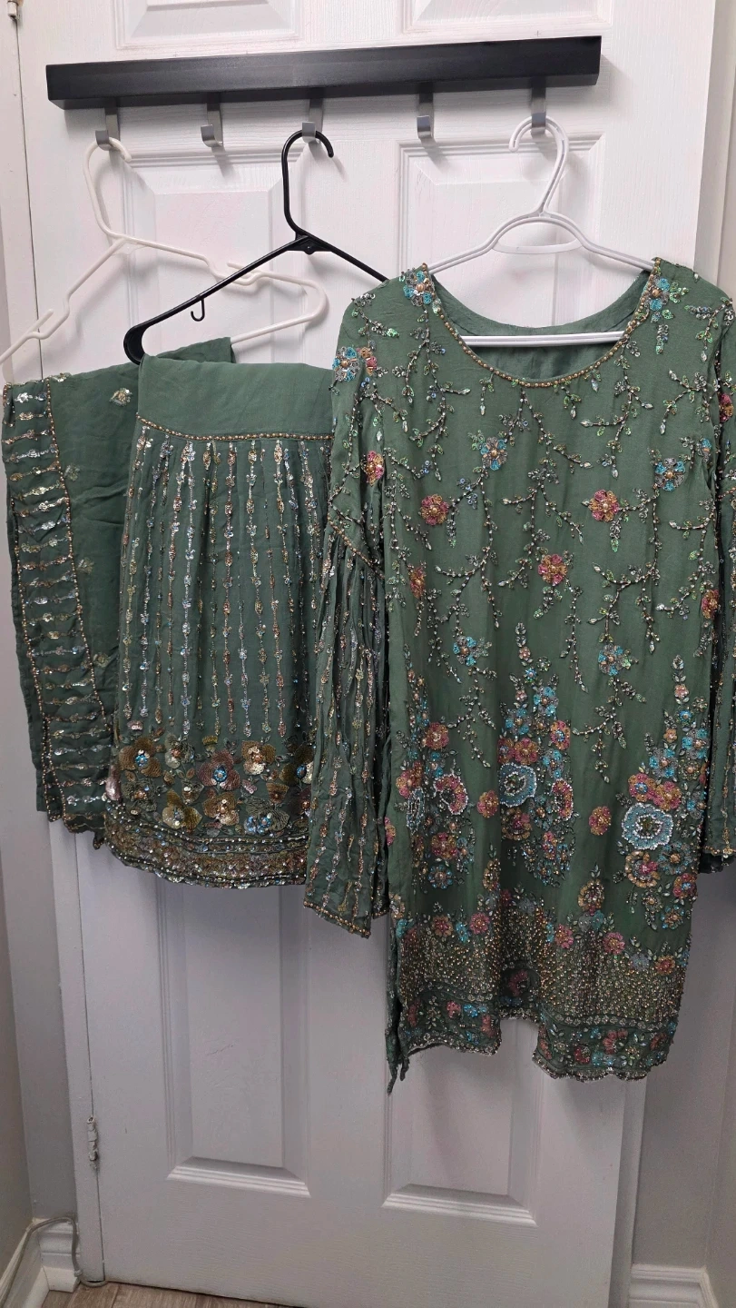 Here are some beautiful Salwar Kameez suits. They are in great condition and ready for a new owner! Buy for up coming summer party or wedding it is in excellent condition...