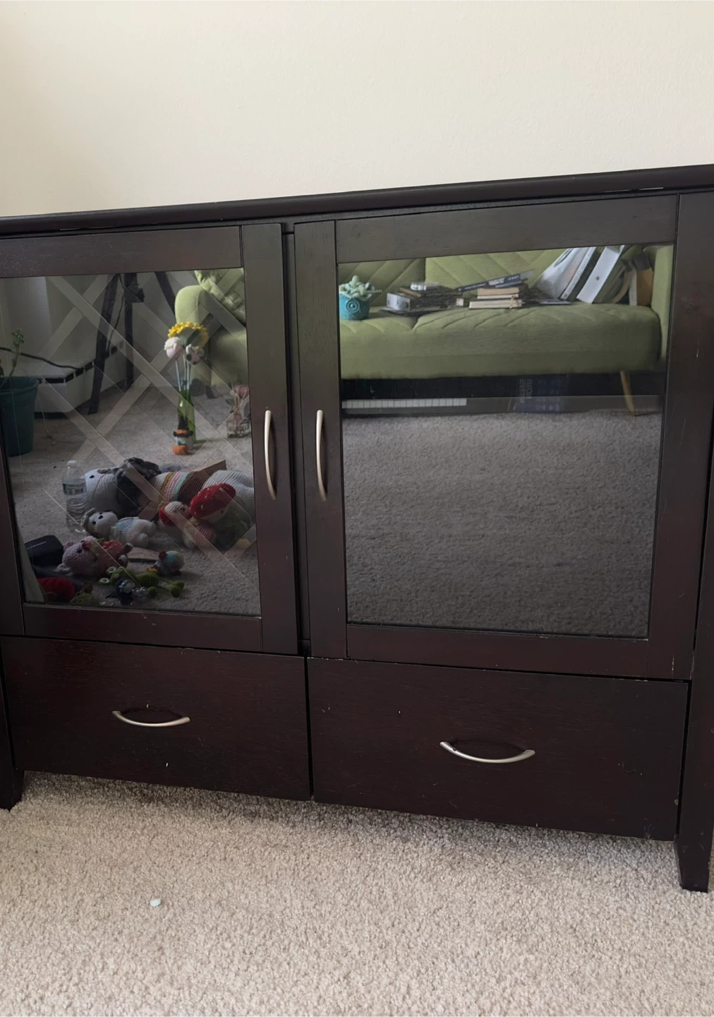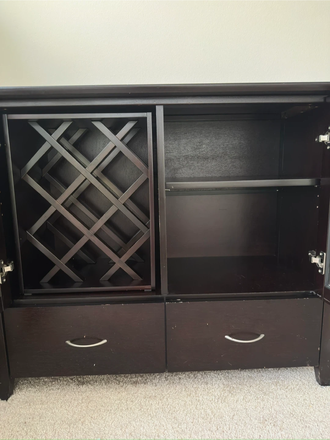 Buy & SellDark Brown Wood CabinetDark Brown Wood Cabinet$76Selling a dark brown wood cabinet. It has glass doors on top and drawers on the bottom. The inside has shelves and a wine rack.WHERE TO MEETArgyleView MapSELLERMayUptown170 reviews2 chats·2 favorites·117 viewsSEND CHAT TO SELLERHi May! I’m interested in your listing.Hi May! I’m interested in your listing.Get the Karrot app to chatSign In to chat