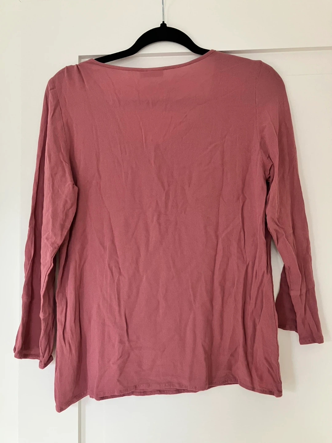 ONLY women's long-sleeve top in a dusty rose colour. It features a tie-neck detail and bell sleeves. Size medium (EU 40).