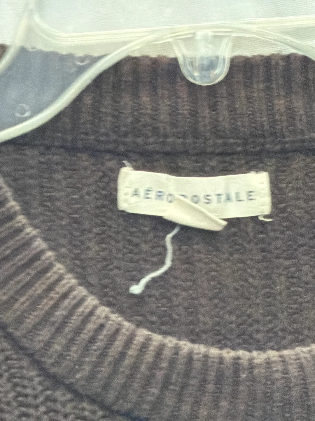 This Aeropostale sweater features a rich brown color and a comfortable knit texture. It's a cropped style with long sleeves. This sweater is made of a soft material.