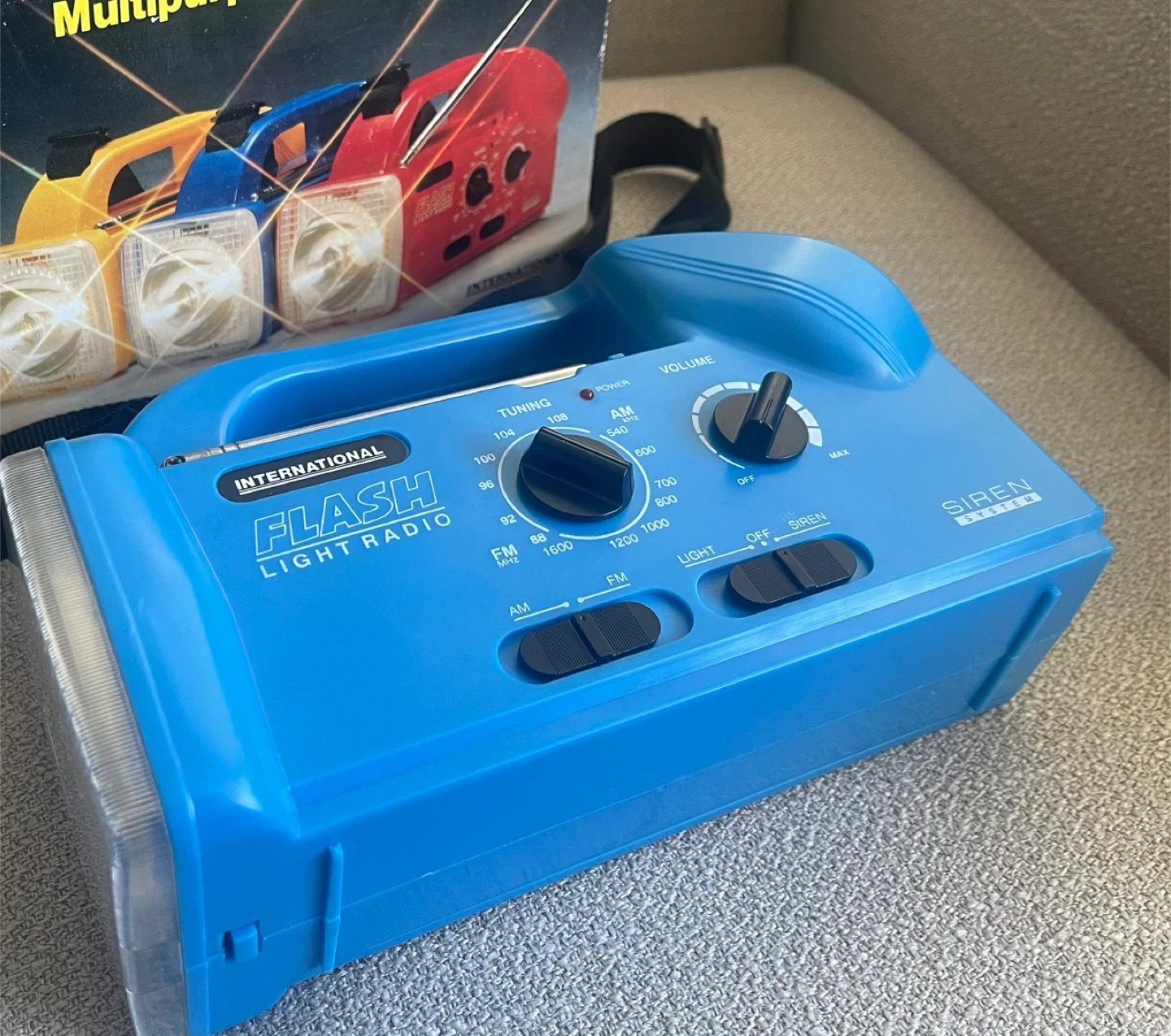 Multipurpose radio with AM/FM bands, flashlight, and siren functions. Includes original box. Great for emergency preparedness! With new 3 batteries.