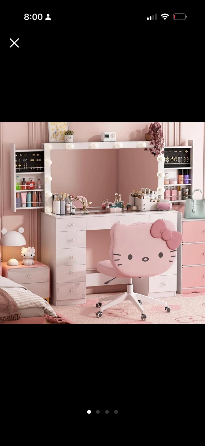 This vanity is great for a bedroom, apartment, or beauty setup. The lights around the mirror provide great lighting for makeup and skincare routines.