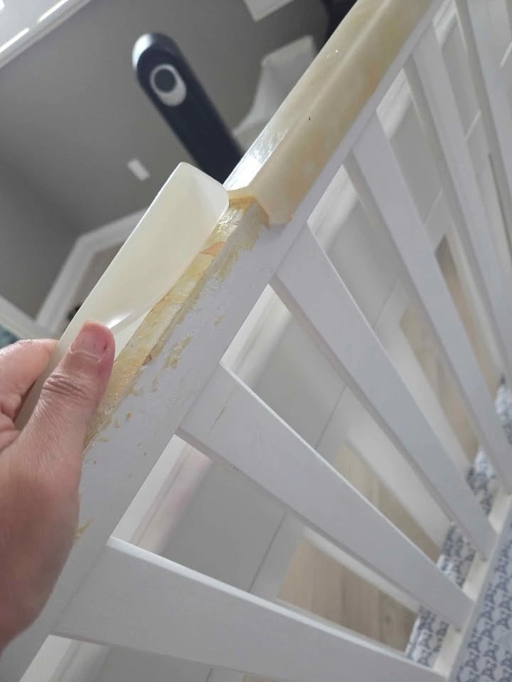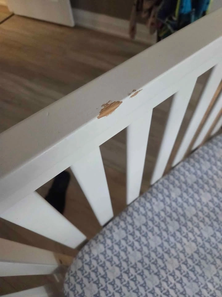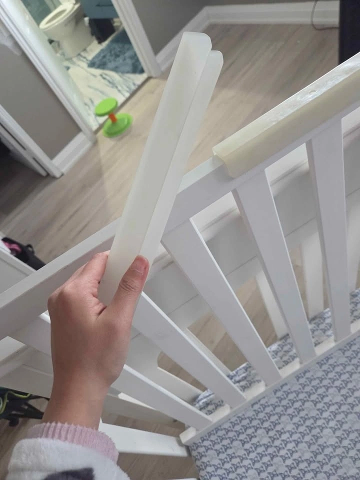 I tried to glue the rubber silicone on one of the sides as my son was teething and started biting the wood (the yellow under is from the glue).