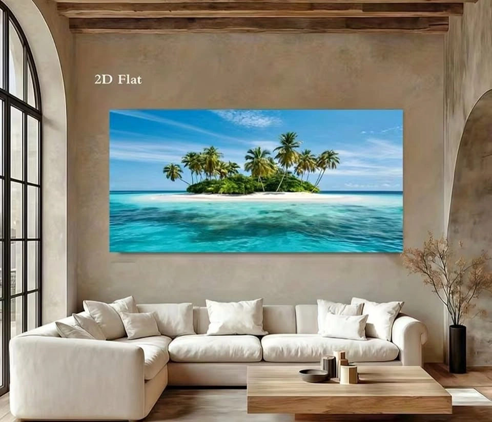 Bring a calm and relaxing beach vibe into your home. Size: 52 x 24 inches (Large statement piece). This stunning canvas features a peaceful tropical island surrounded by clear blue water — perfect for creating a bright and relaxing atmosphere. Premium canvas print, frameless modern design, ready to hang. Brand new.