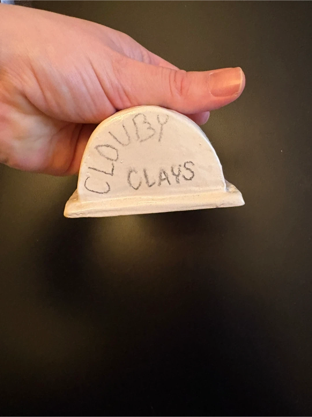Selling a unique piece of handmade pottery from Cloudy Clays! It's a charming little item with a distinctive design. Perfect for adding a touch of artistry to your space.