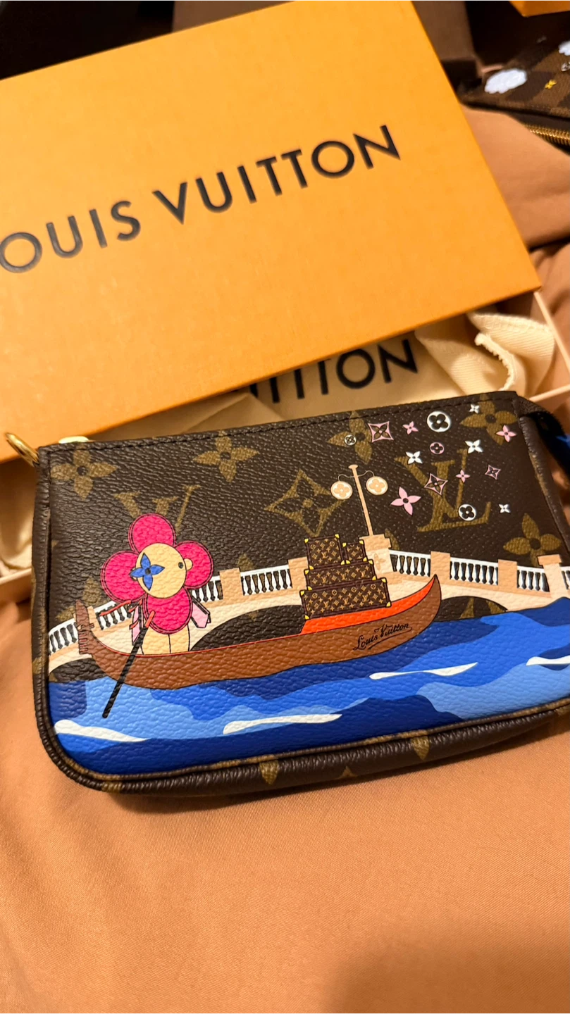 This Louis Vuitton pouch features the iconic monogram canvas with a charming Venice gondola print. It's a stylish accessory for everyday essentials. Includes the original Louis Vuitton box.
