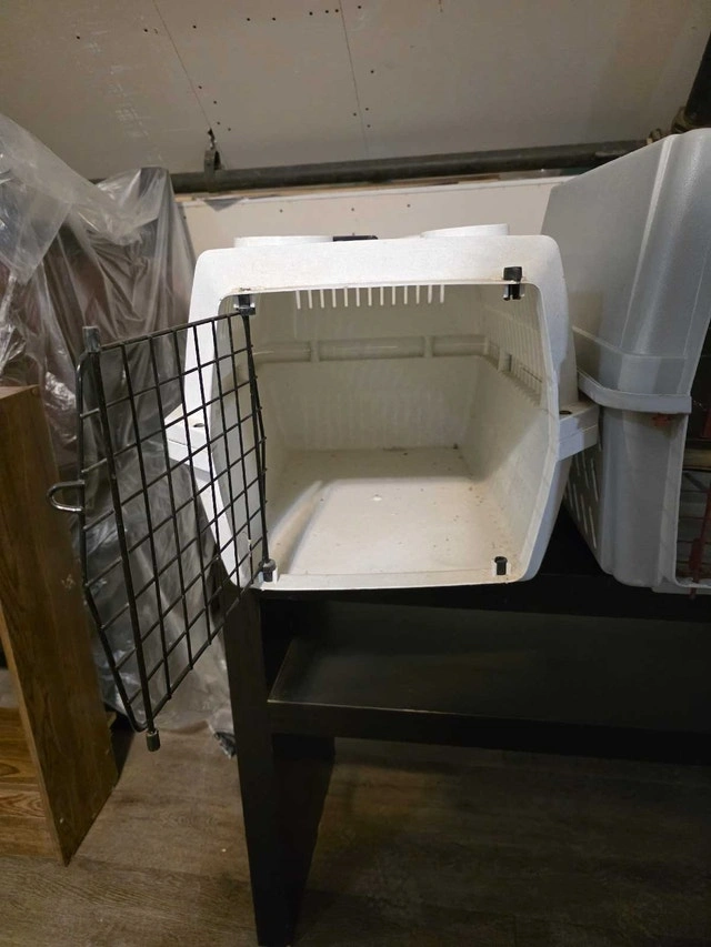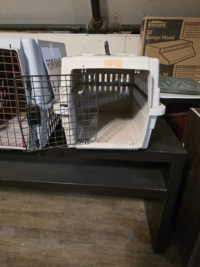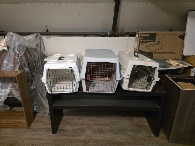 I have 3 pet cages. 2 of them fits a small dog or a cat, and the middle one fits a small or medium size dog, or maybe 2 small dogs. I cleaned them but they need a better cleaning. $20 each or 3 for $50 obo.